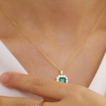 This timeless design is completed with the addition of round-cut cubic zirconia enveloping the emerald to make the vibrant green pop all the more.